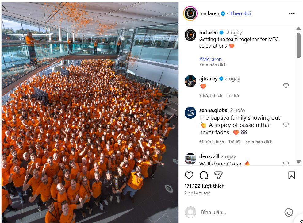 In a post on their official Instagram, Norris and Piastri could be seen with one hand on the trophy each, with a sea of papaya behind them as the whole team celebrated their first consecutive team win since 1991.